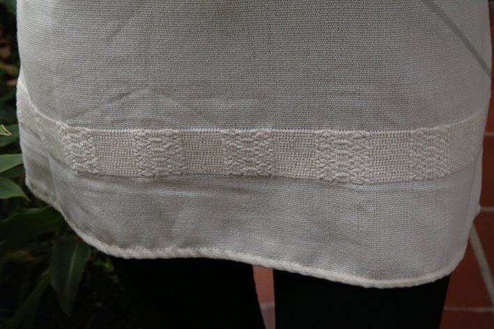 Tejido en relieve del mismo telar en la parte inferior, Cuello redondo.